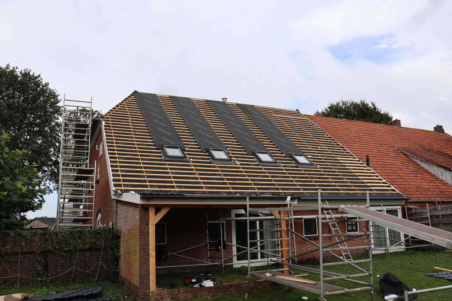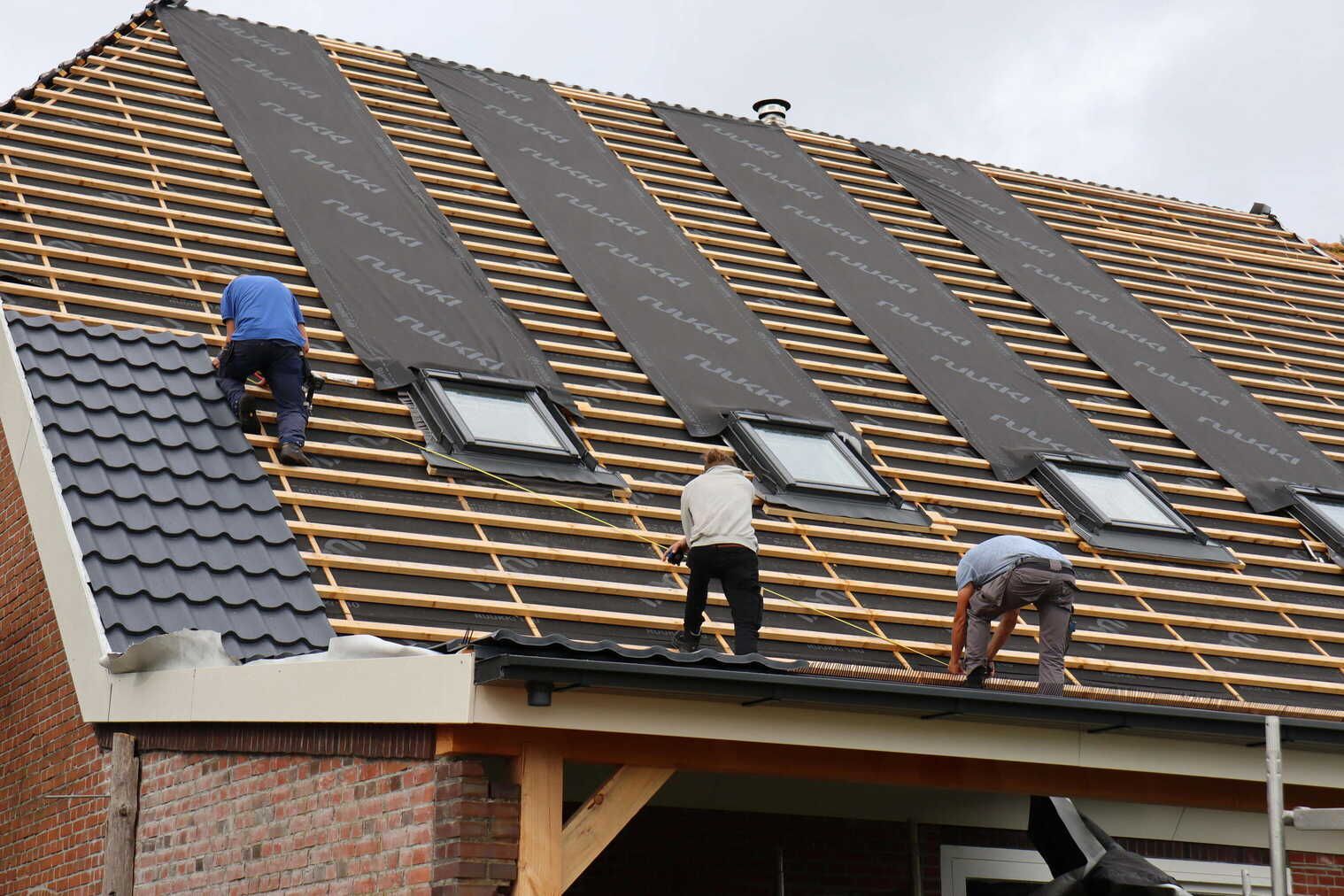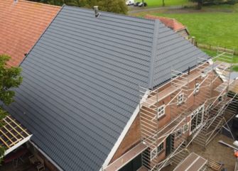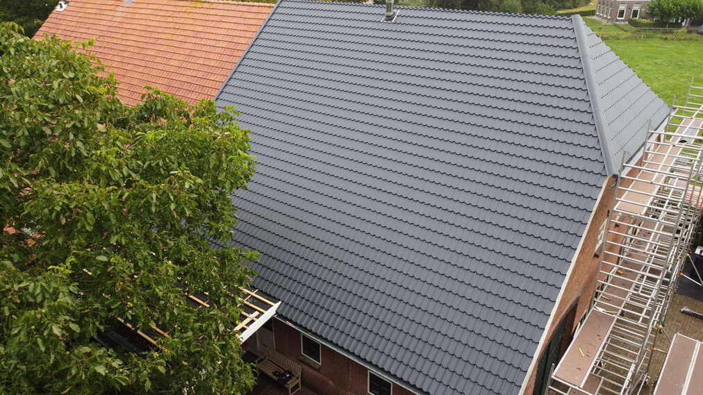 Onlangs hebben we in Dedemsvaart een dakrenovatie uitgevoerd voor een oude boerderij. Het verouderde dak moest vervangen worden, en in plaats van traditionele dakpannen kozen we voor een slimme en duurzame oplossing: Monterrey Grand dakpanplaten.