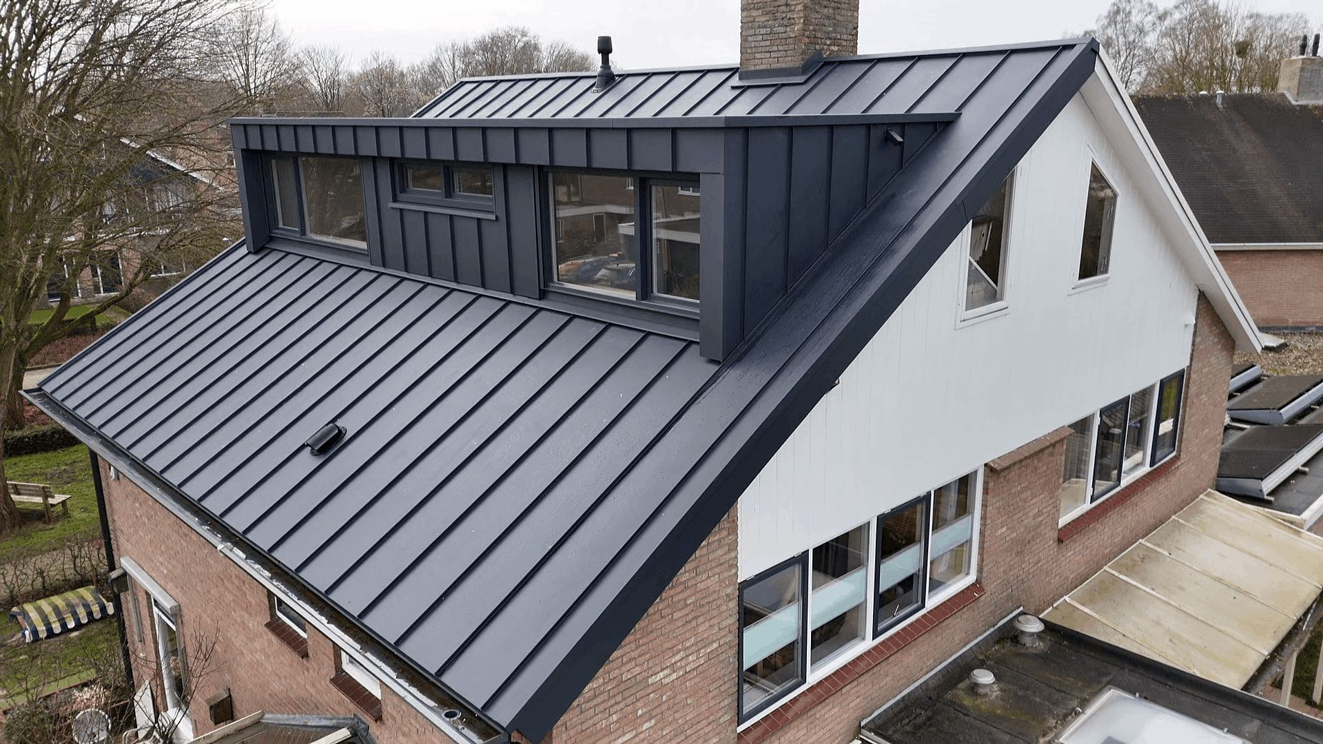 De felsnaden lopen naadloos door van het dakvlak naar de dakkapel. Geen verspringingen, geen onderbrekingen. Dat vraagt om nauwkeurige voorbereiding en montage, maar het verschil zie je direct terug in het eindresultaat.
