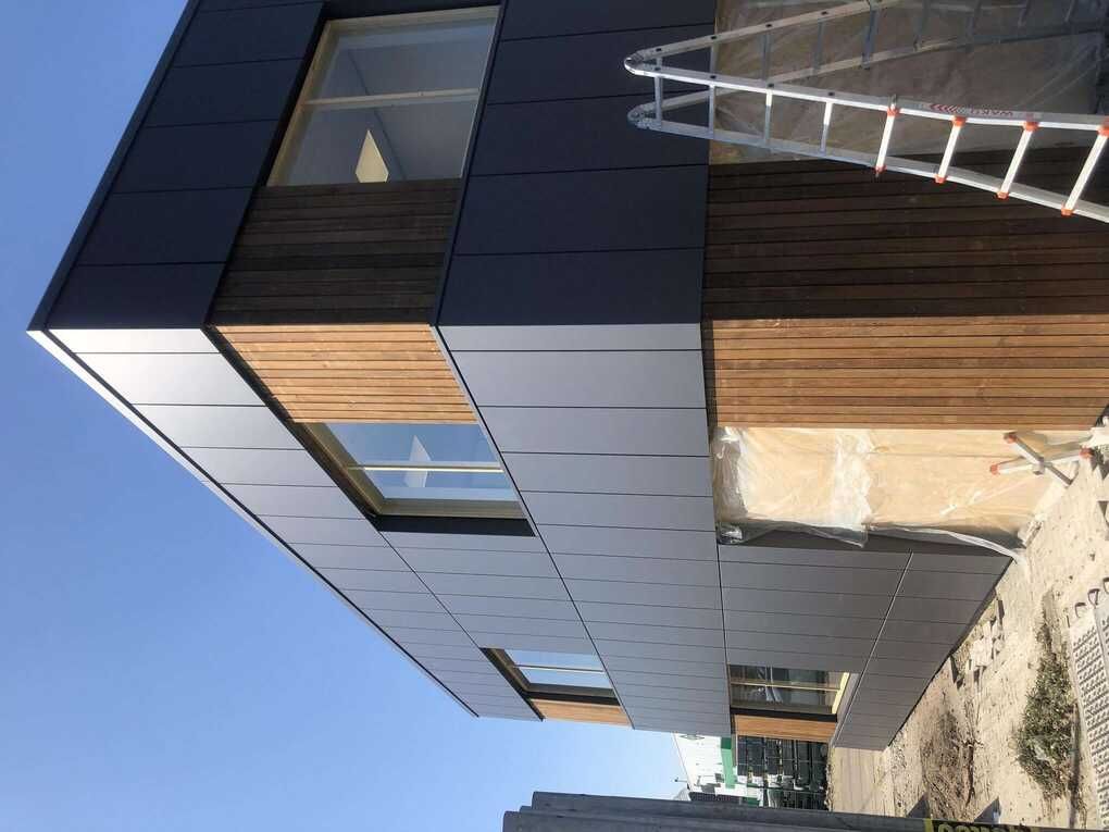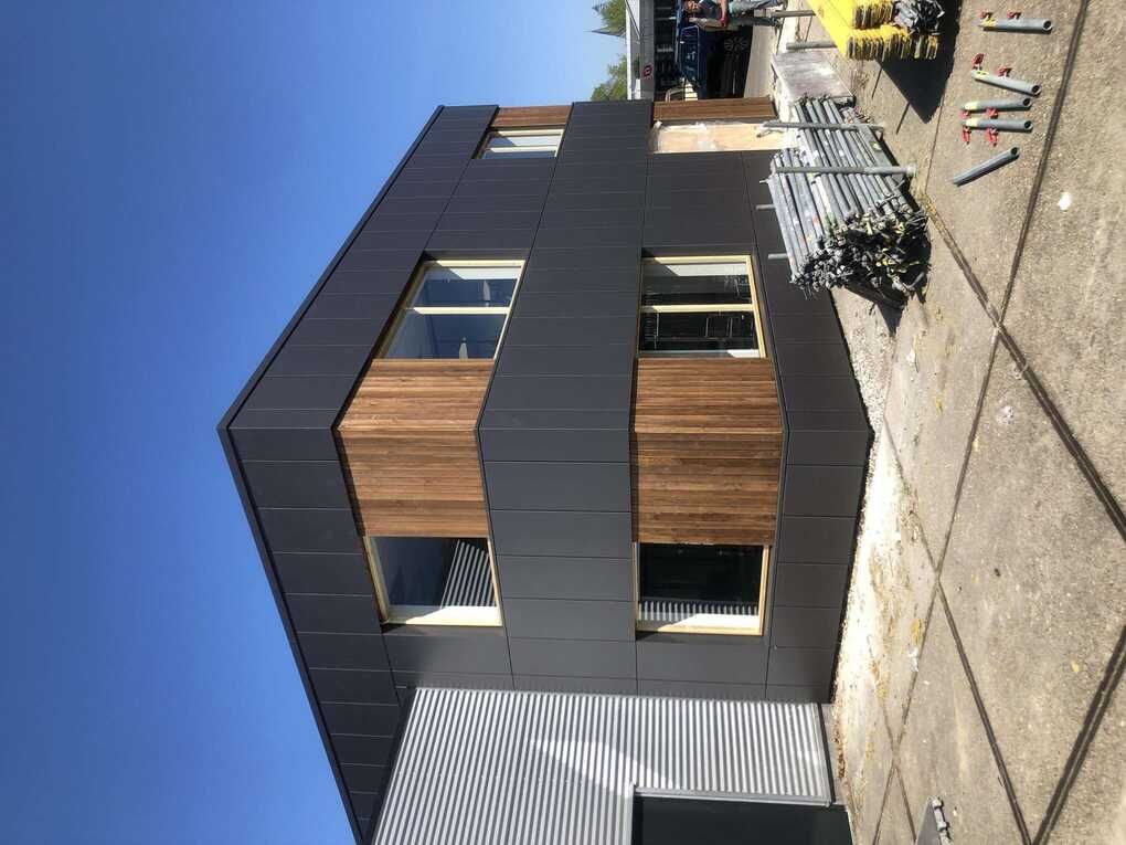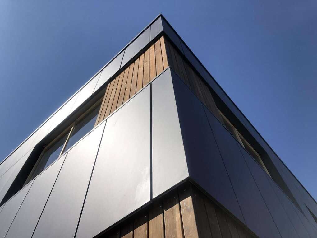 Bij dit project is er gebruik gemaakt van Liberta gevelcassettes. Dit product in combinatie met een houten afwerking is een lust voor het oog. De gevelcassettes voegen een moderne uitstraling toe aan het pand. De gevelcassettes zijn in meer dan 20 kleuren beschikbaar, hier is gekozen voor de antracieten kleur. Mocht je zelf op zoek zijn naar een soortgelijk product, dan zijn de stalen cassettes een toegankelijke keus. Aangezien de cassettes in verschillende hoeken en groottes gemaakt kunnen worden, is er altijd een oplossing voor je project.