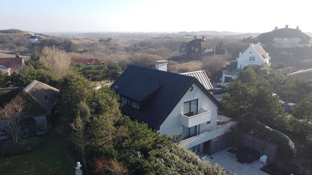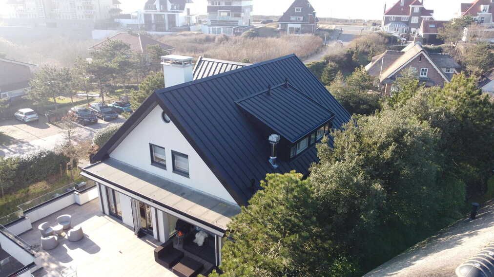 Bij deze exclusieve woningrenovatie in Noordwijk is gekozen voor de toekomstbestendige combinatie van Roofit Solar zonnepanelen en Classic stalen felsbanen. De duurzame panelen genereren jaarlijks meer dan 11.000 kWh stroom, terwijl ze haast onzichtbaar in het stijlvolle dak verwerkt zijn. Dankzij het innovatieve montagesysteem zonder zichtbare bevestigingen geniet je van een dak dat mooi blijft én decennialang meegaat. Wil je weten hoe deze oplossing ook bij jou thuis past? Wij denken graag met je mee.